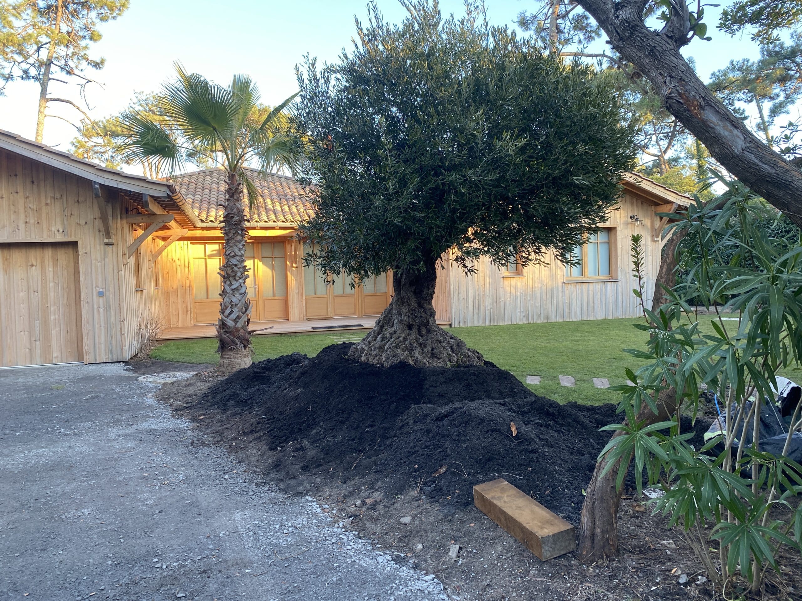 Établie à Lège-Cap-Ferret, Buron Paysages intervient sur l’ensemble de la presqu’île pour donner vie à vos projets paysagers les plus ambitieux. Notre spécialité ? L’aménagement de jardin haut de gamme et la plantation de gros sujets qui transforment instantanément vos espaces extérieurs. Que ce soit pour l’installation de palmiers majestueux ou d’arbres centenaires, nous maîtrisons toutes les techniques de plantation et d’ancrage nécessaires à leur épanouissement.
