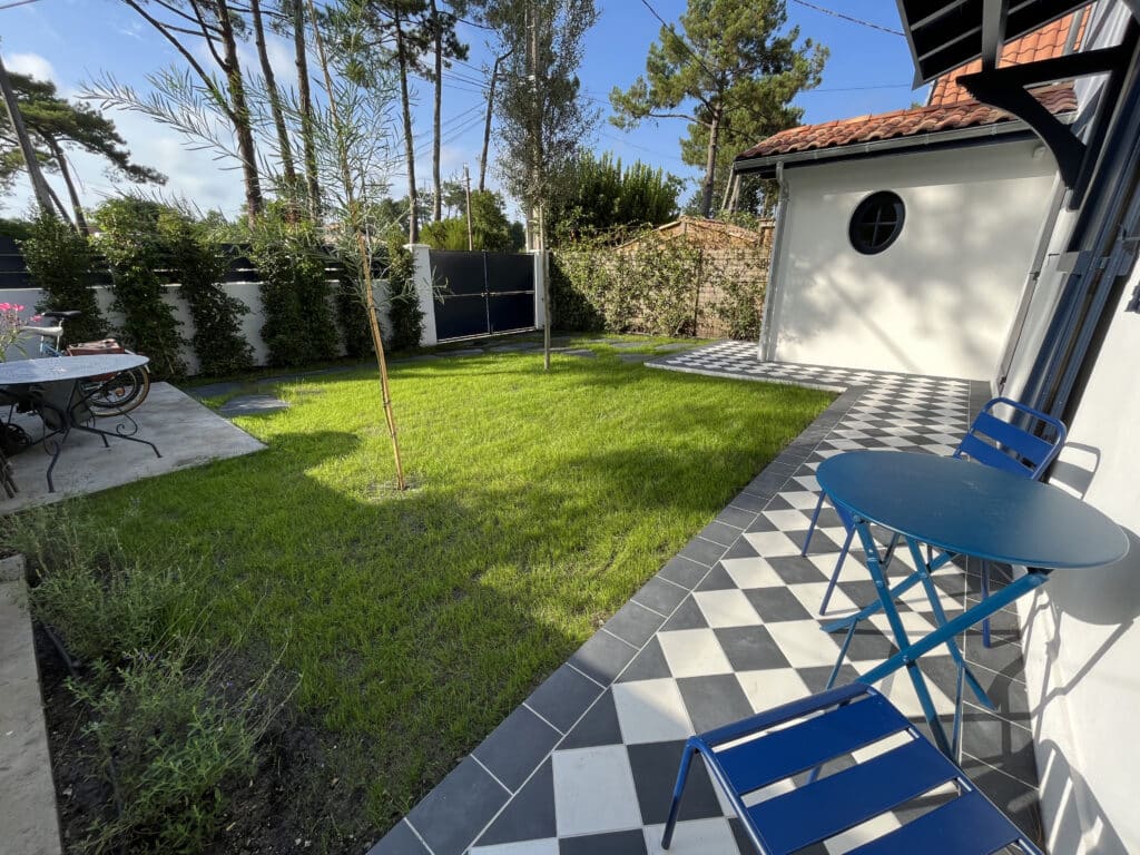 À Andernos-les-Bains, cette réalisation illustre parfaitement la volonté de créer un jardin à la fois esthétique, fonctionnel et parfaitement intégré à son environnement.